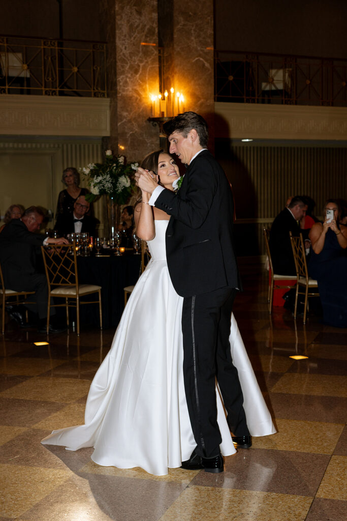 After golden hour portraits and a vintage car ride through the city, the reception kicked off at The Coronado. The vibe completely shifted from tropical and airy to rich and moody. Think candlelight, gold detailing, black linens, and romantic arrangements of baby’s breath and greenery. The space felt upscale and cozy all at once like an old-world ballroom with modern touches. Meridith and Tim made their entrance hand-in-hand, glasses raised, glowing in every way. Their reception was full of heartfelt toasts, great music, and quiet little moments just for the two of them. With Super 8 and film rolling the whole time, even the tiniest memories, like the way they looked at each other when no one else was watching got captured forever!
